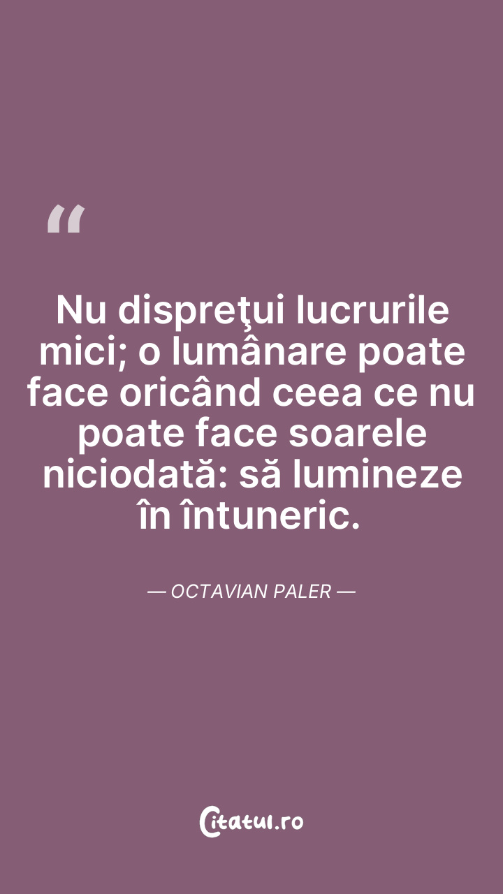 Nu dispreţui lucrurile mici; o lumânare poate face oricând ceea ce nu poate face soarele niciodată: să lumineze în întuneric. Octavian Paler