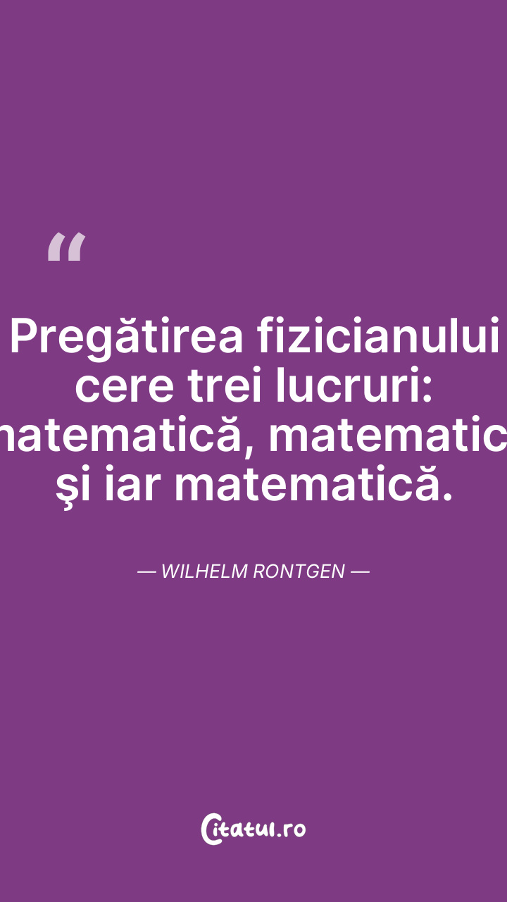 Pregătirea fizicianului cere trei lucruri: matematică, matematică şi iar matematică. Wilhelm Rontgen