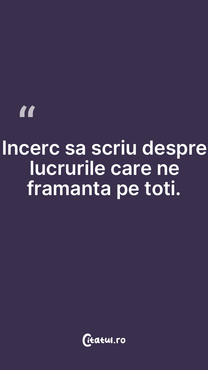 Incerc sa scriu despre lucrurile care ne framanta pe toti.