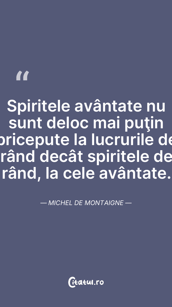 Spiritele avântate nu sunt deloc mai puţin pricepute la lucrurile de rând decât spiritele de rând, la cele avântate. Michel de Montaigne