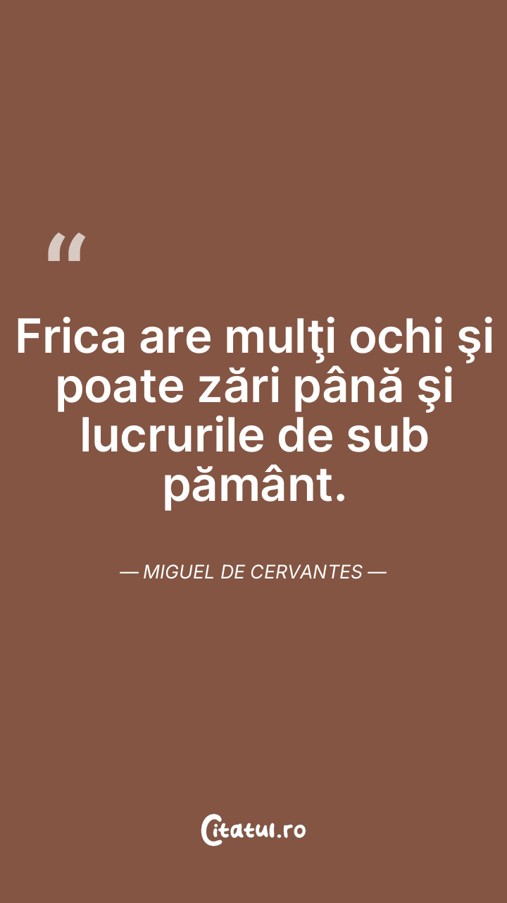 Frica are mulţi ochi şi poate zări până şi lucrurile de sub pământ. Miguel de Cervantes