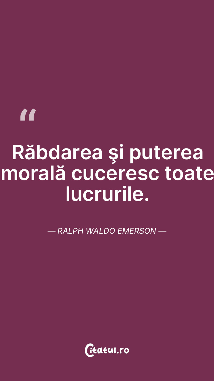 Răbdarea şi puterea morală cuceresc toate lucrurile. Ralph Waldo Emerson