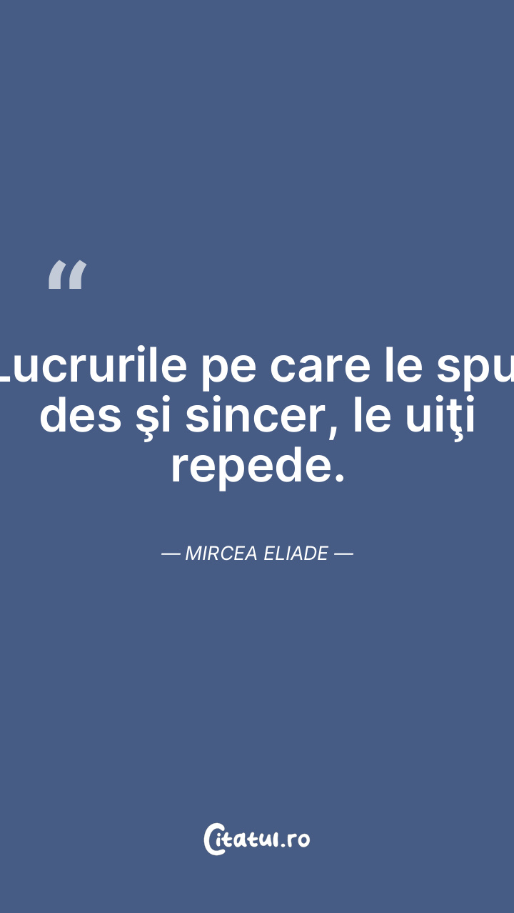 Lucrurile pe care le spui des şi sincer, le uiţi repede. Mircea Eliade