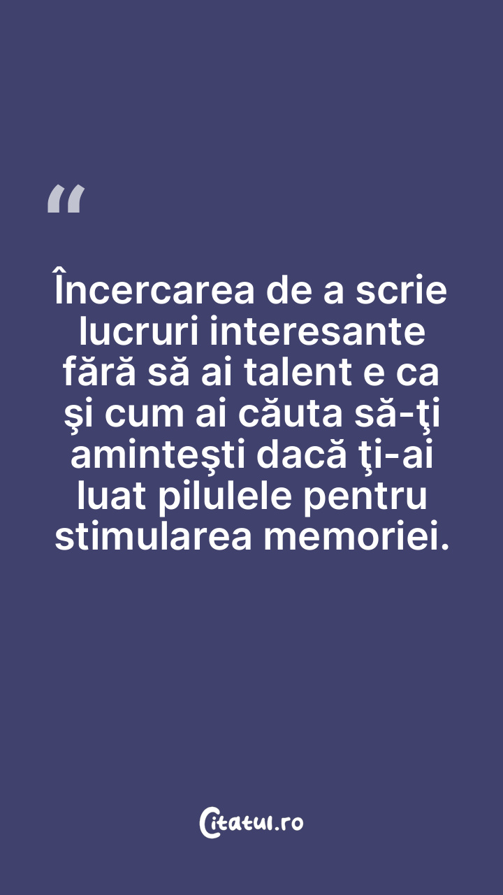 Încercarea de a scrie lucruri interesante fără să ai talent e ca şi cum ai căuta să-ţi aminteşti dacă ţi-ai luat pilulele pentru stimularea memoriei.