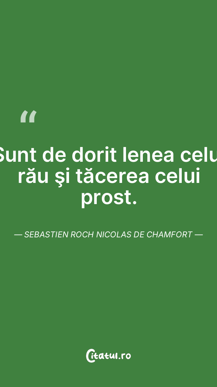 Sunt de dorit lenea celui rău şi tăcerea celui prost. Sebastien Roch Nicolas de Chamfort