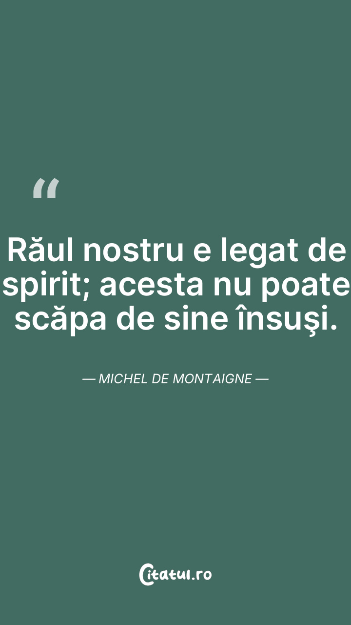 Răul nostru e legat de spirit; acesta nu poate scăpa de sine însuşi. Michel de Montaigne