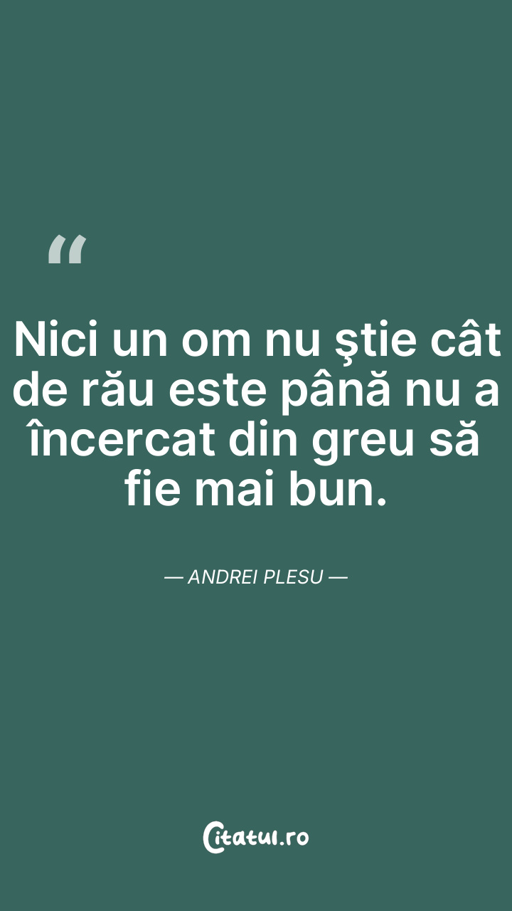 Nici un om nu ştie cât de rău este până nu a încercat din greu să fie mai bun. Andrei Plesu