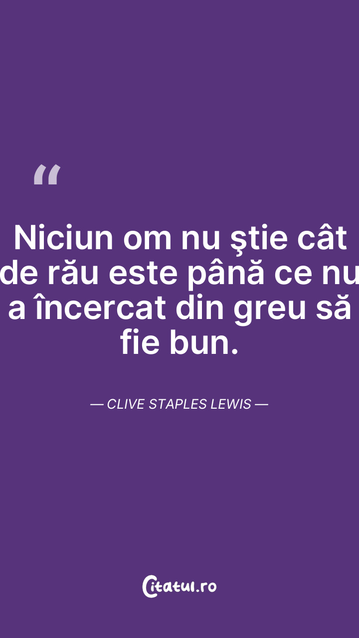 Niciun om nu ştie cât de rău este până ce nu a încercat din greu să fie bun. Clive Staples Lewis