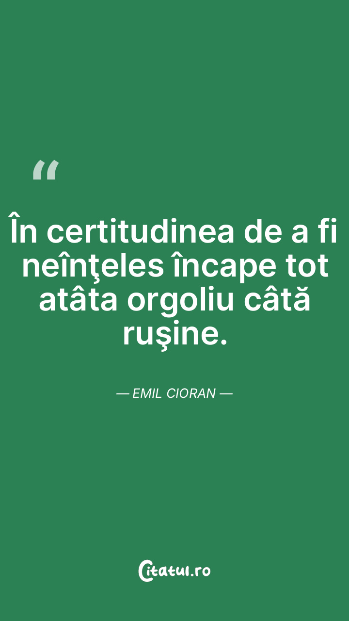 În certitudinea de a fi neînţeles încape tot atâta orgoliu câtă ruşine. Emil Cioran
