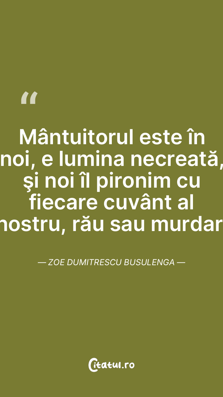 Mântuitorul este în noi, e lumina necreată, şi noi îl pironim cu fiecare cuvânt al nostru, rău sau murdar. Zoe Dumitrescu Busulenga