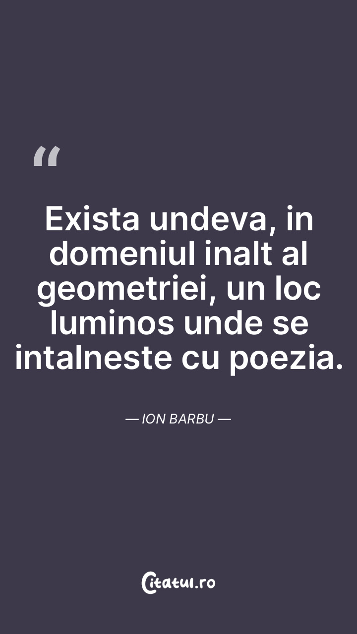 Exista undeva, in domeniul inalt al geometriei, un loc luminos unde se intalneste cu poezia. Ion Barbu