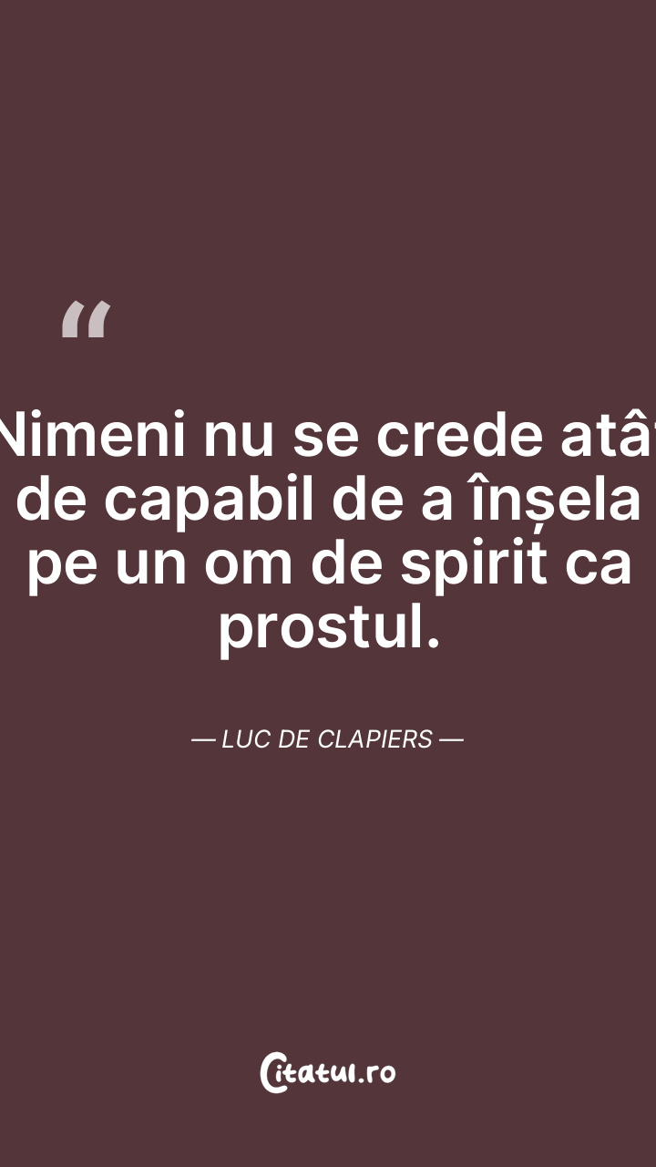 Nimeni nu se crede atât de capabil de a înșela pe un om de spirit ca prostul. Luc de Clapiers