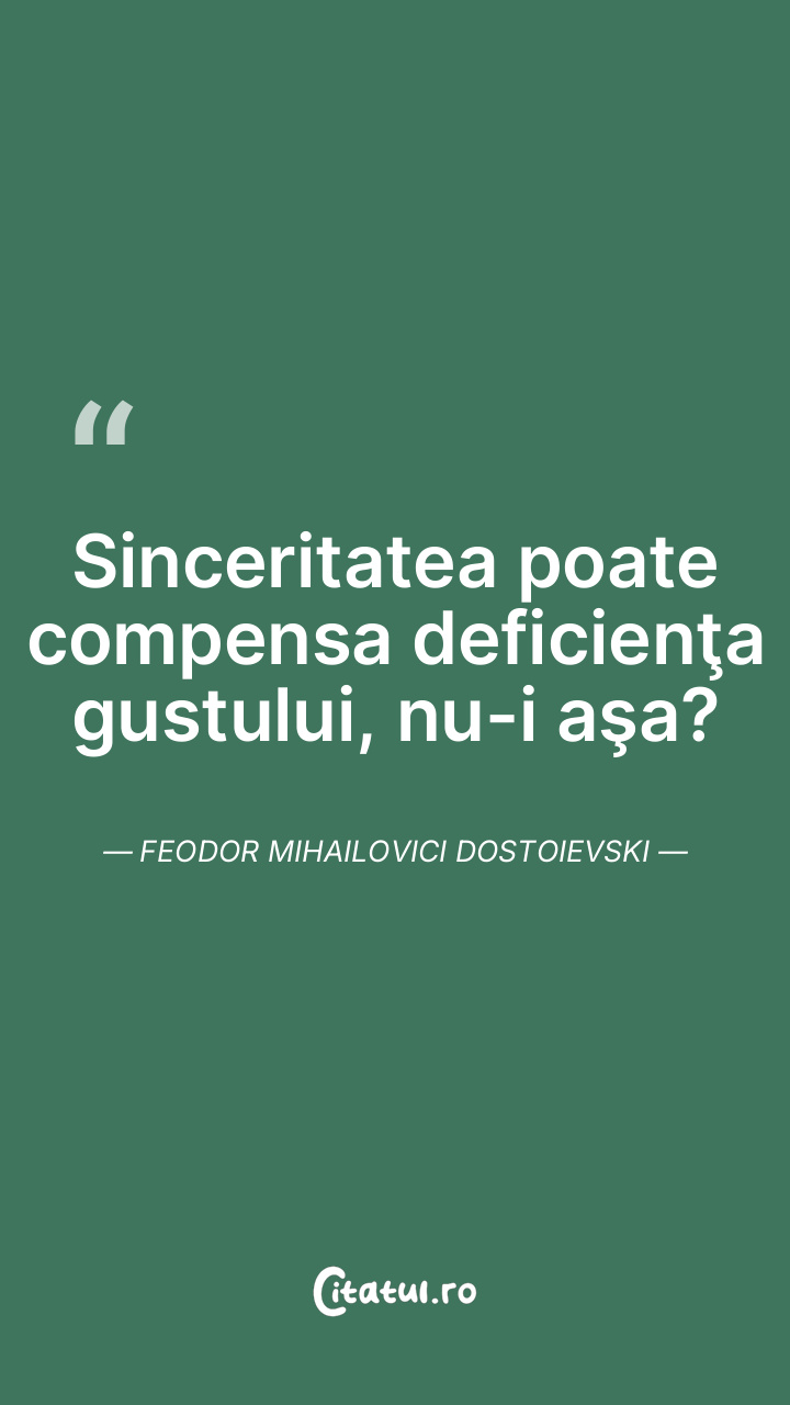 Sinceritatea poate compensa deficienţa gustului, nu-i aşa? Feodor Mihailovici Dostoievski