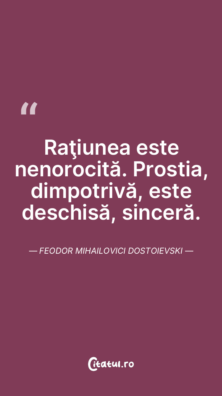 Raţiunea este nenorocită. Prostia, dimpotrivă, este deschisă, sinceră. Feodor Mihailovici Dostoievski