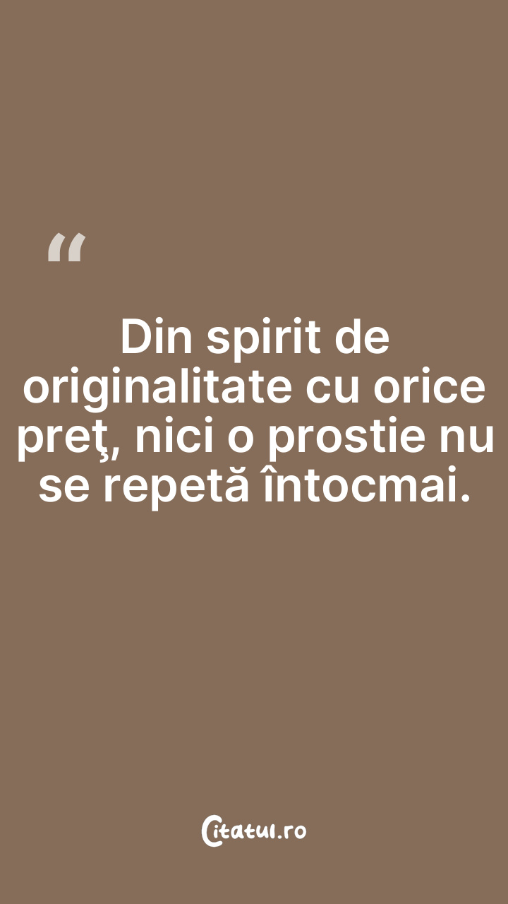 Din spirit de originalitate cu orice preţ, nici o prostie nu se repetă întocmai.