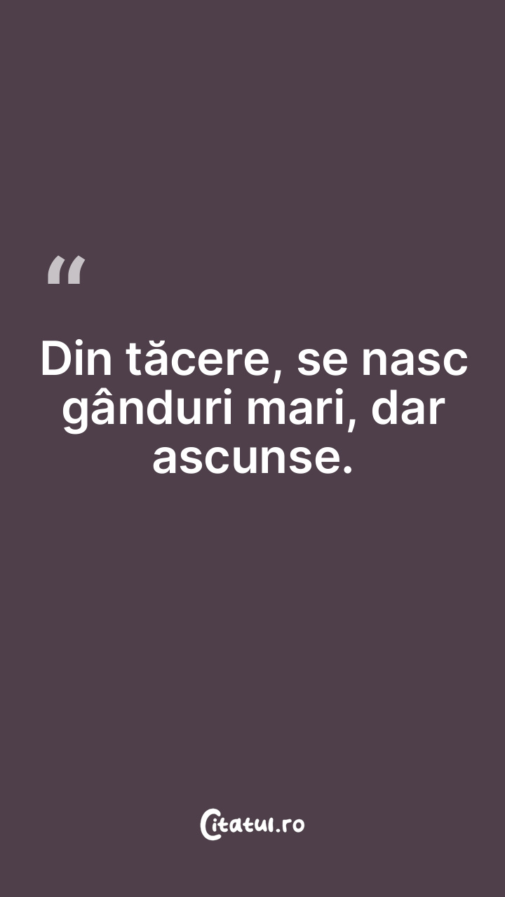 Din tăcere, se nasc gânduri mari, dar ascunse. ...