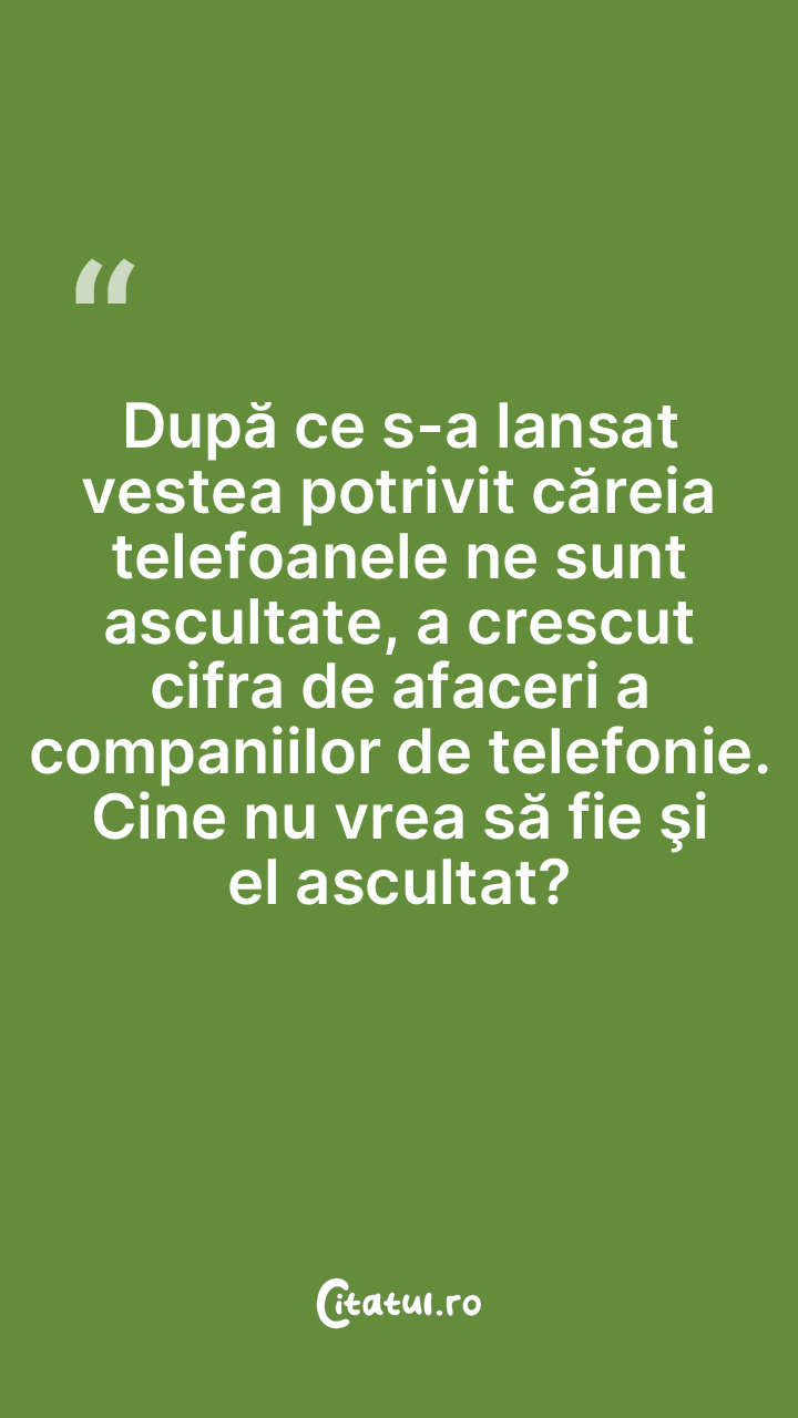 După ce s-a lansat vestea potrivit căreia telefoanele ne sunt ascultate, a crescut cifra de afaceri a companiilor de telefonie. Cine nu vrea să fie şi el ascultat?
