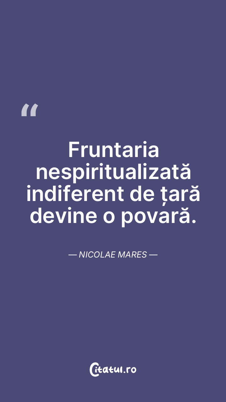 Fruntaria nespiritualizată indiferent de țară devine o povară. Nicolae Mares