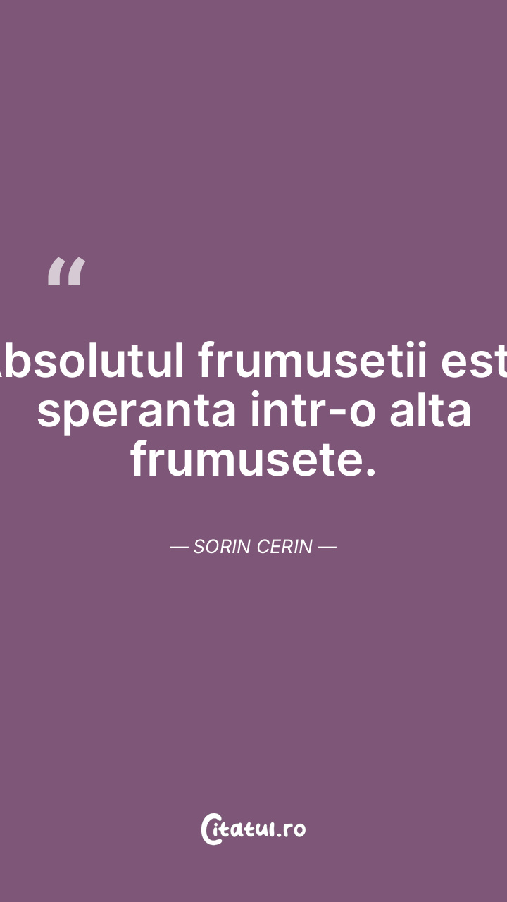 Absolutul frumusetii este speranta intr-o alta frumusete. Sorin Cerin