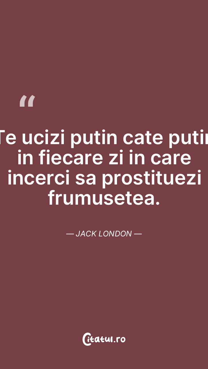 Te ucizi putin cate putin in fiecare zi in care incerci sa prostituezi frumusetea. Jack London