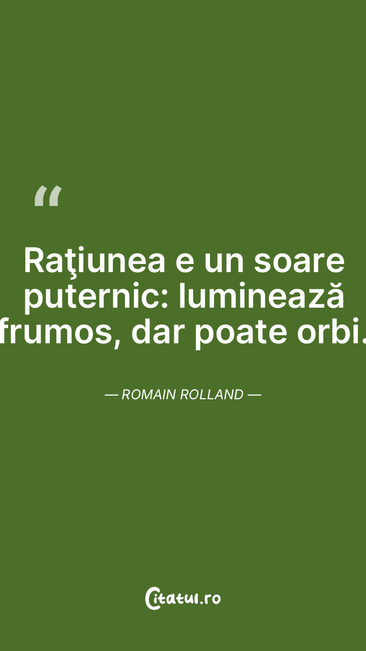 Raţiunea e un soare puternic: luminează frumos, dar poate orbi. Romain Rolland