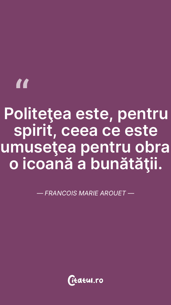 Politeţea este, pentru spirit, ceea ce este frumuseţea pentru obraz: o icoană a bunătăţii. Francois Marie Arouet