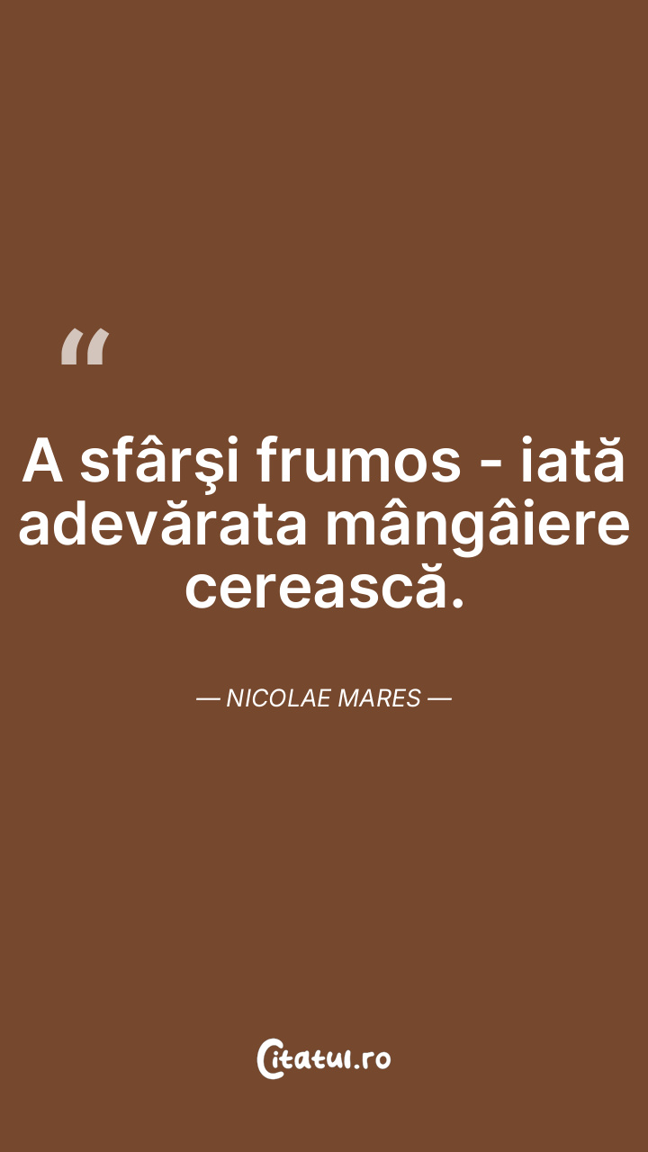 A sfârşi frumos - iată adevărata mângâiere cerească. Nicolae Mares
