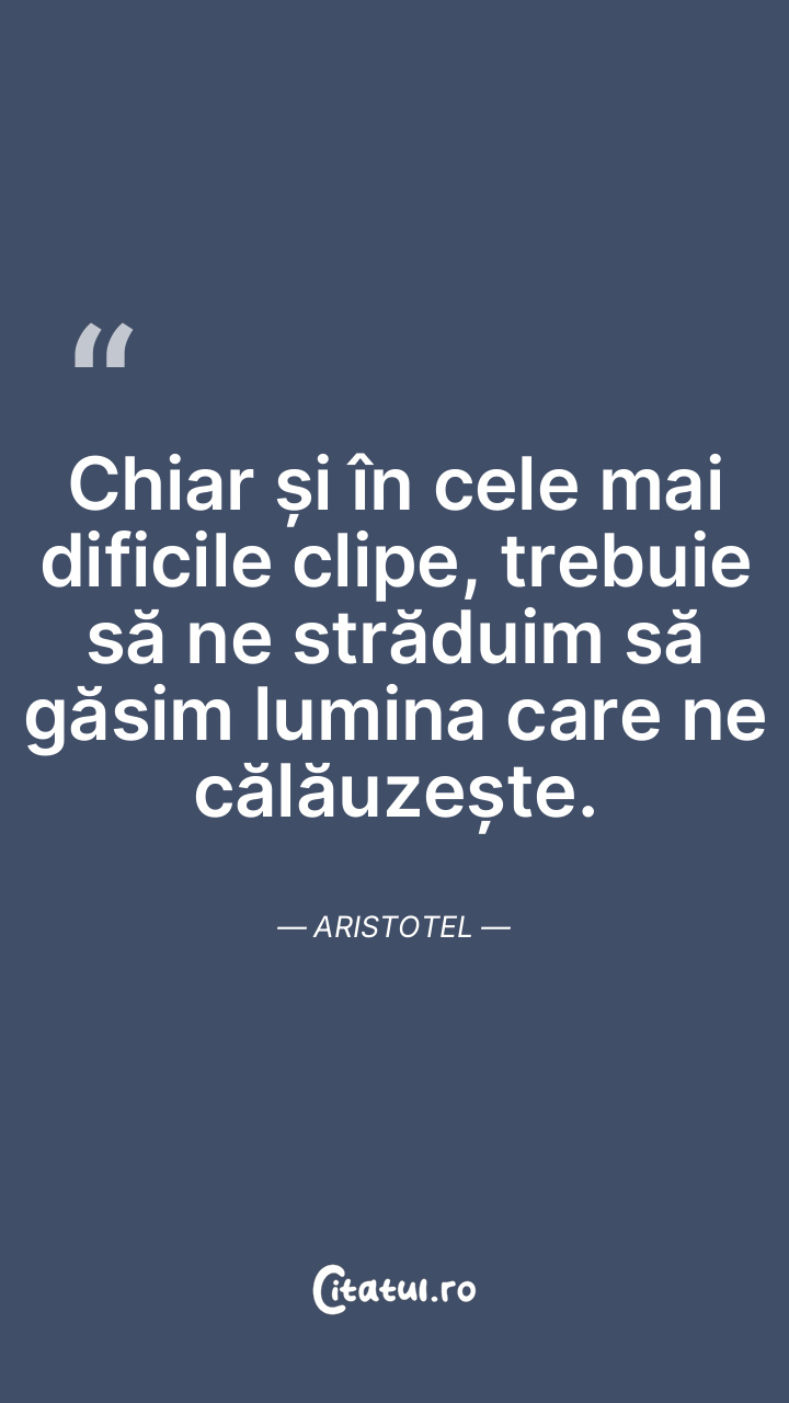Chiar și în cele mai dificile clipe, trebuie să ne străduim să găsim lumina care ne călăuzește. Aristotel