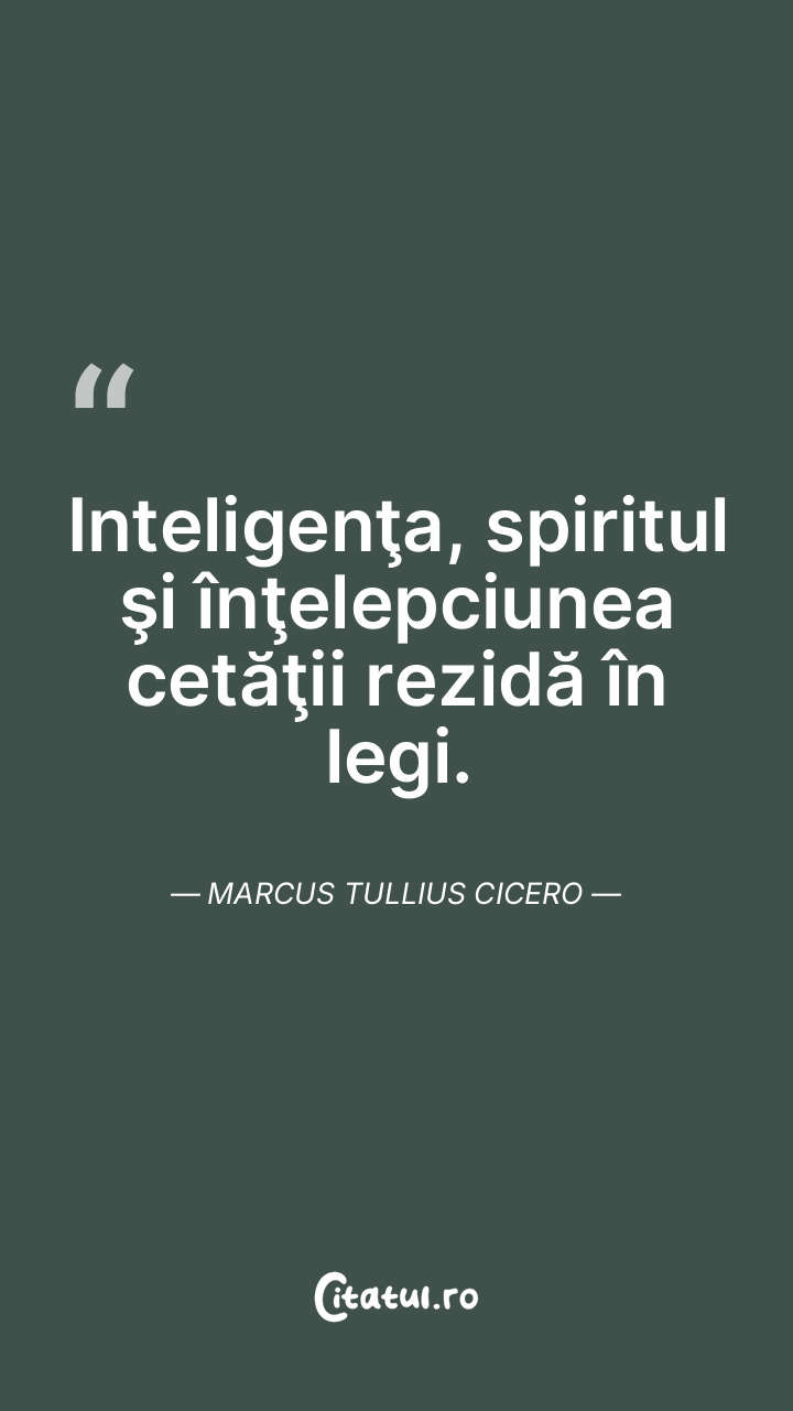 Inteligenţa, spiritul şi înţelepciunea cetăţii rezidă în legi. Marcus Tullius Cicero