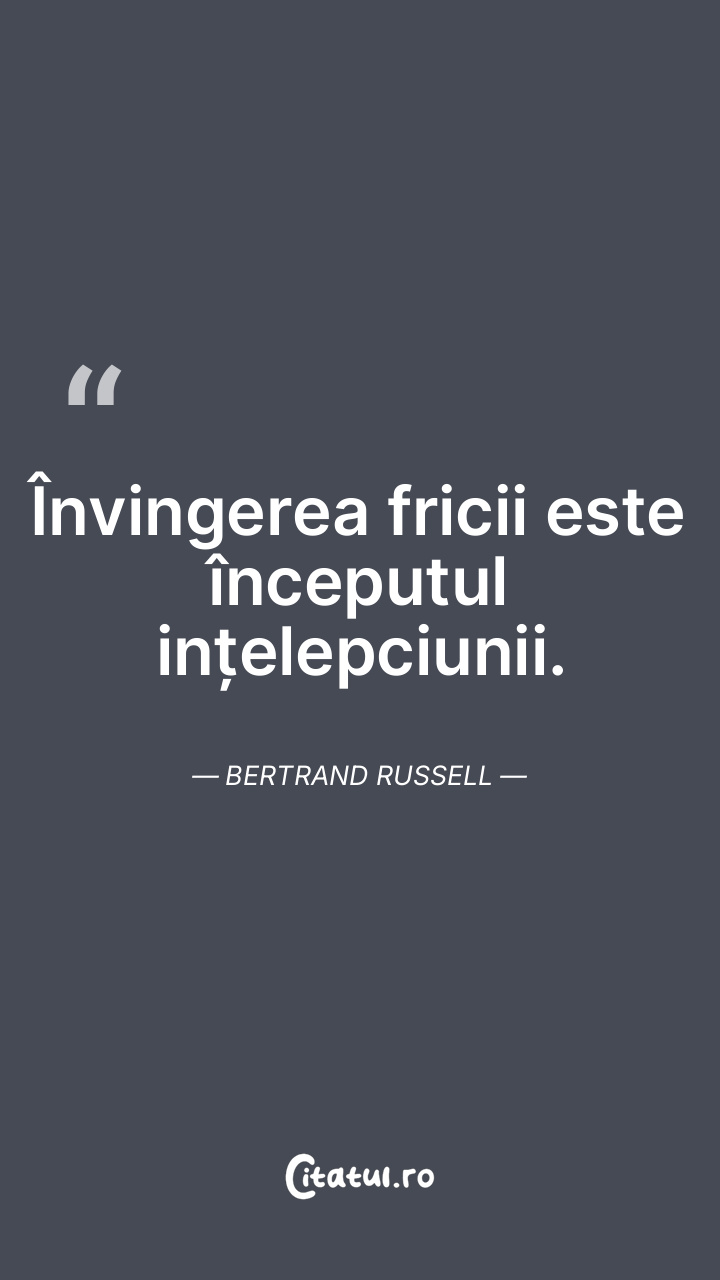 Învingerea fricii este începutul ințelepciunii. Bertrand Russell