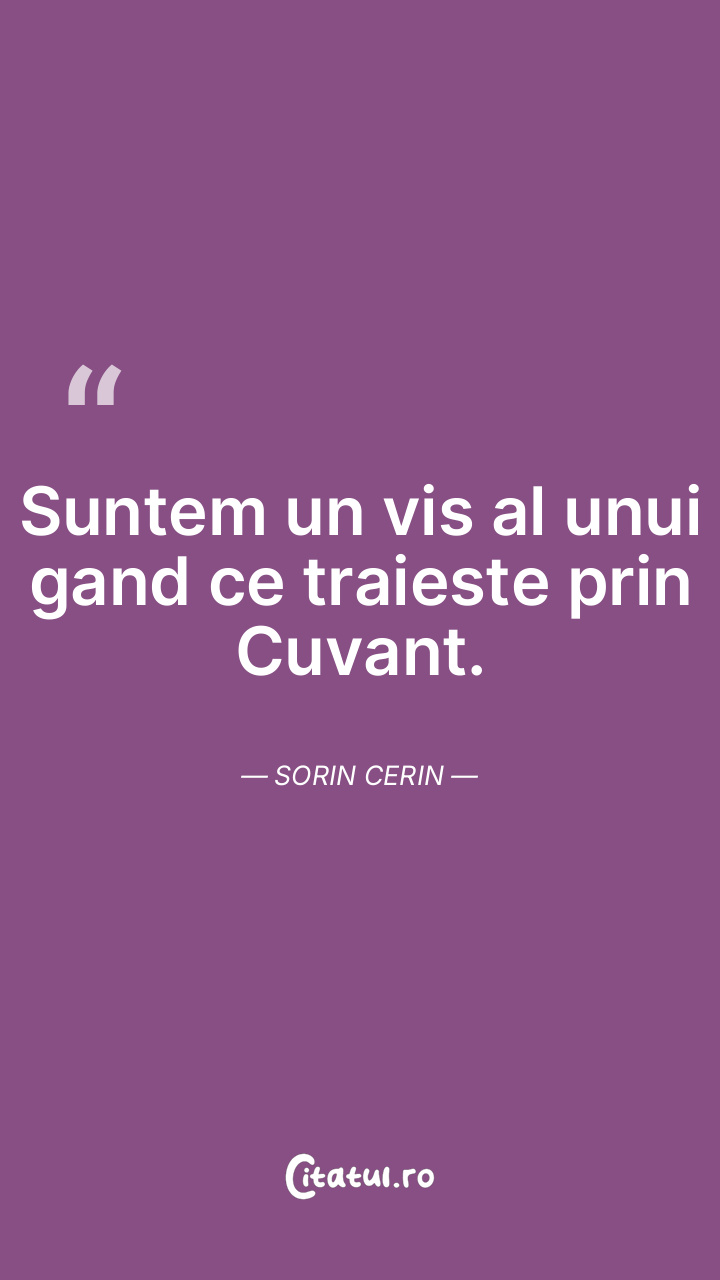 Suntem un vis al unui gand ce traieste prin Cuvant. Sorin Cerin