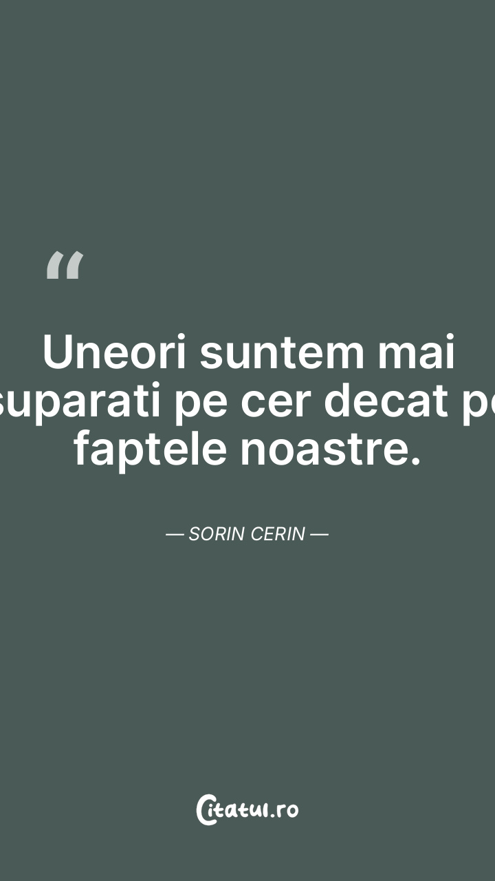 Uneori suntem mai suparati pe cer decat pe faptele noastre. Sorin Cerin