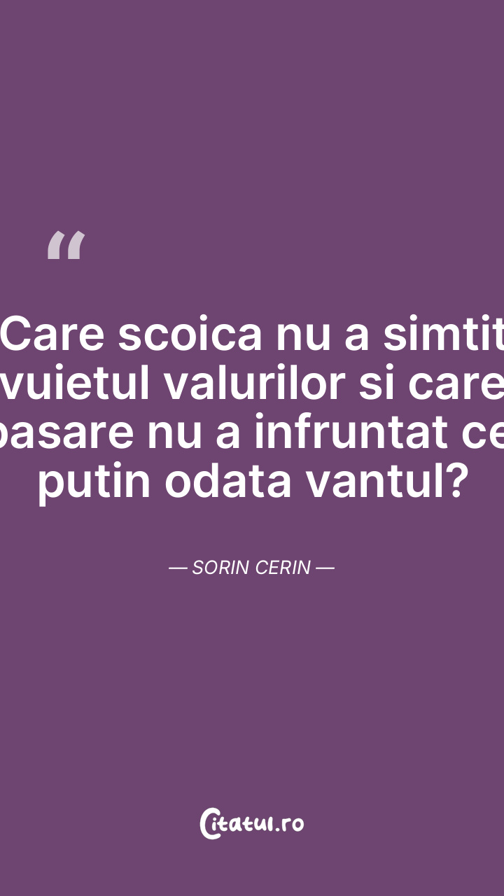 Care scoica nu a simtit vuietul valurilor si care pasare nu a infruntat cel putin odata vantul? Sorin Cerin