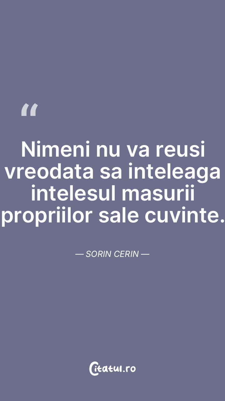 Nimeni nu va reusi vreodata sa inteleaga intelesul masurii propriilor sale cuvinte. Sorin Cerin