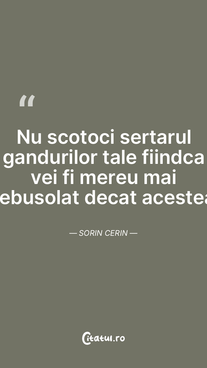 Nu scotoci sertarul gandurilor tale fiindca vei fi mereu mai debusolat decat acestea. Sorin Cerin