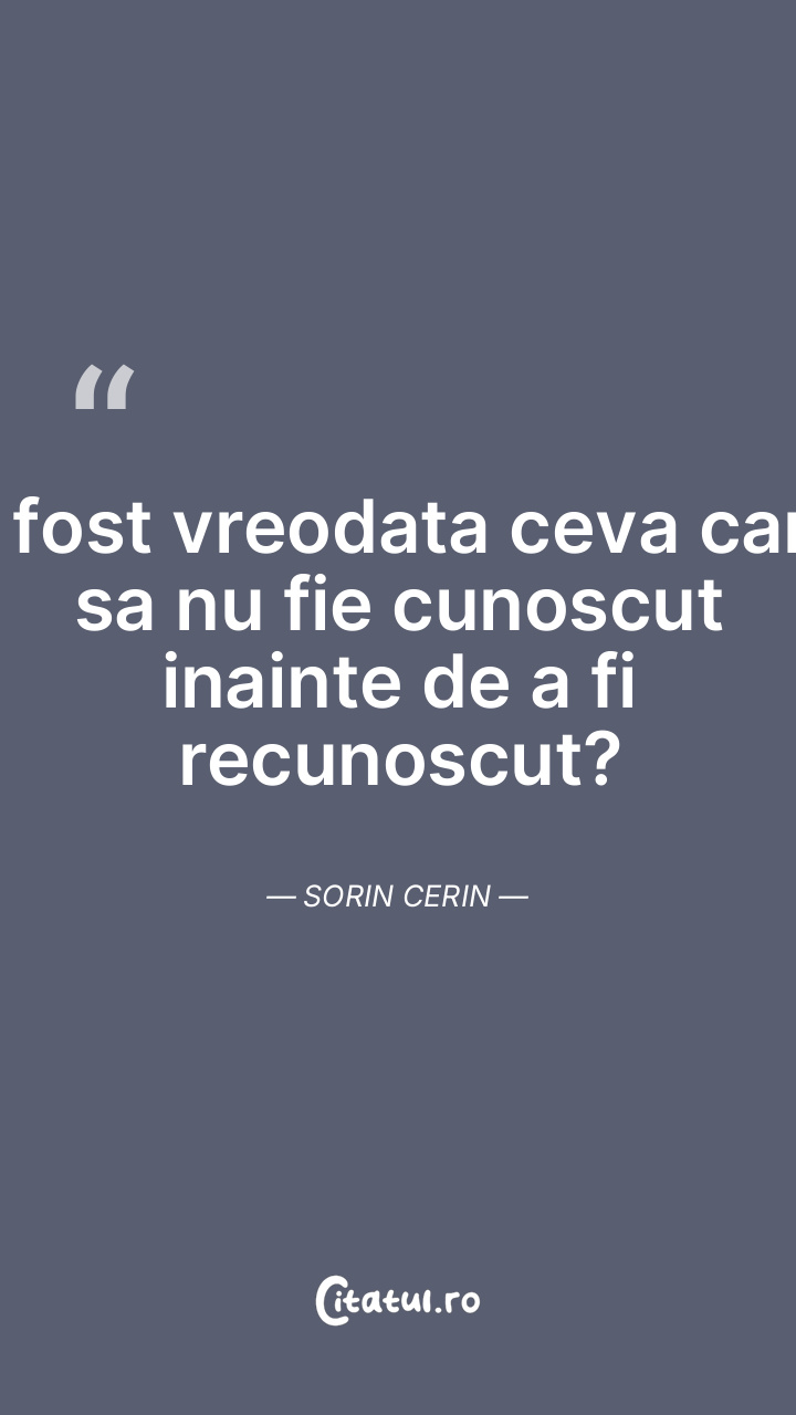 A fost vreodata ceva care sa nu fie cunoscut inainte de a fi recunoscut? Sorin Cerin