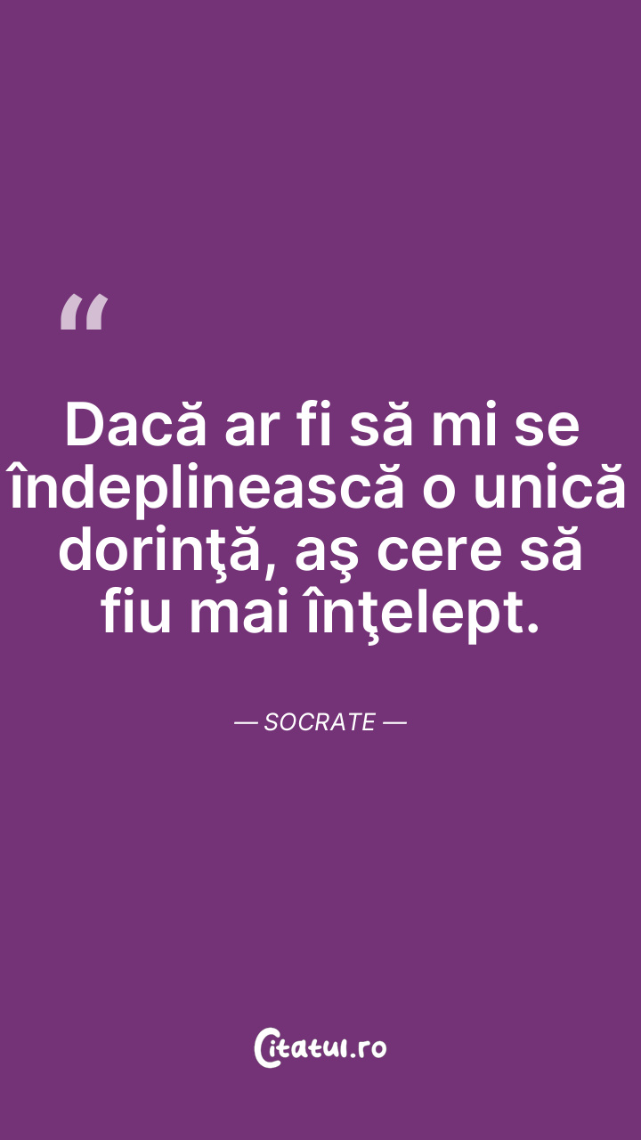 Dacă ar fi să mi se îndeplinească o unică dorinţă, aş cere să fiu mai înţelept. Socrate