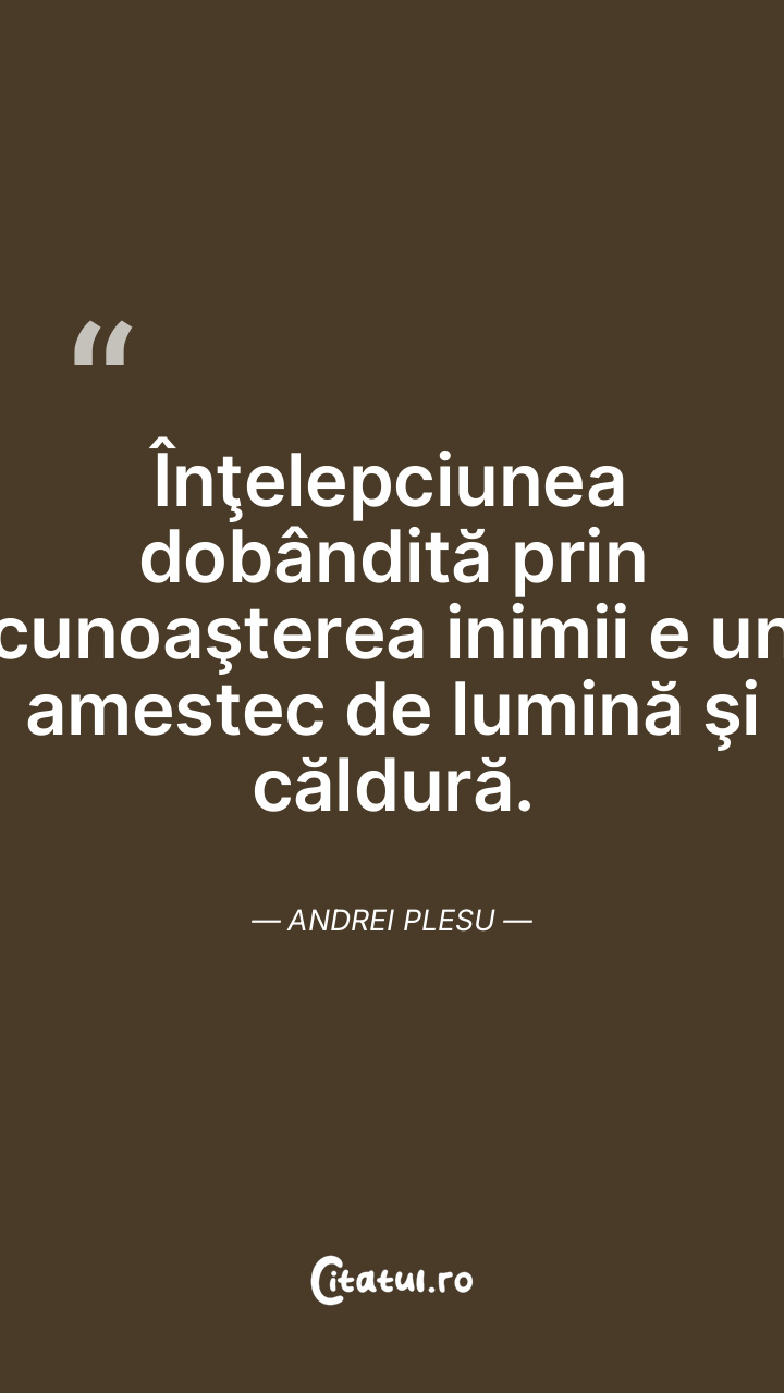 Înţelepciunea dobândită prin cunoaşterea inimii e un amestec de lumină şi căldură. Andrei Plesu