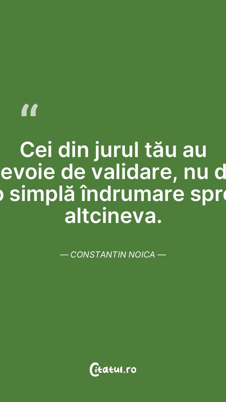 Cei din jurul tău au nevoie de validare, nu de o simplă îndrumare spre altcineva. Constantin Noica