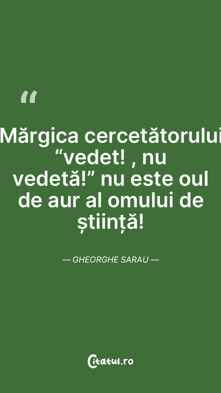 Mărgica cercetătorului “vedet! , nu vedetă!” nu este oul de aur al omului de știință! Gheorghe Sarau