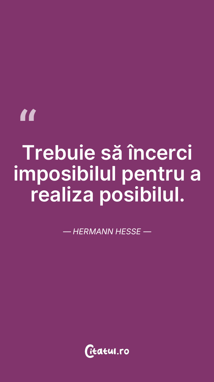 Trebuie să încerci imposibilul pentru a realiza posibilul. Hermann Hesse