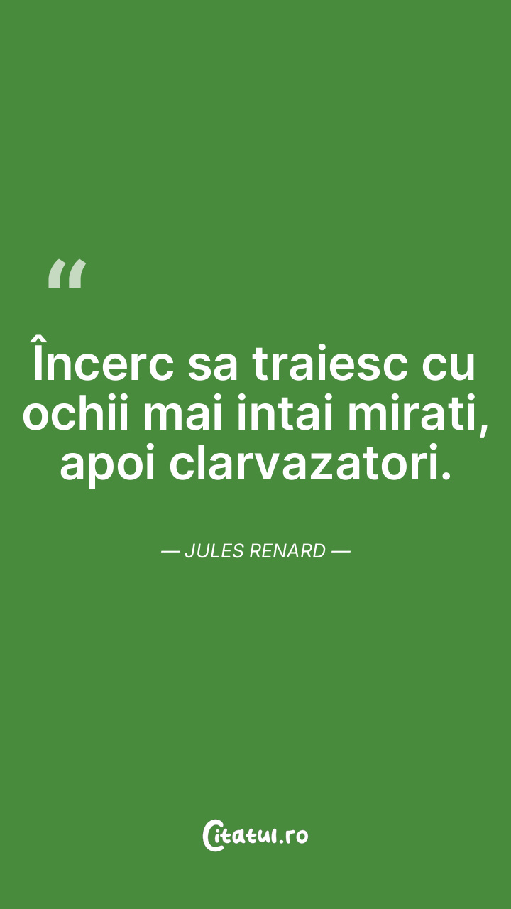 Încerc sa traiesc cu ochii mai intai mirati, apoi clarvazatori. Jules Renard