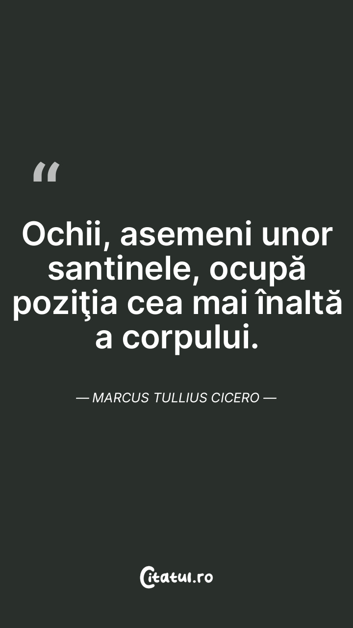 Ochii, asemeni unor santinele, ocupă poziţia cea mai înaltă a corpului. Marcus Tullius Cicero