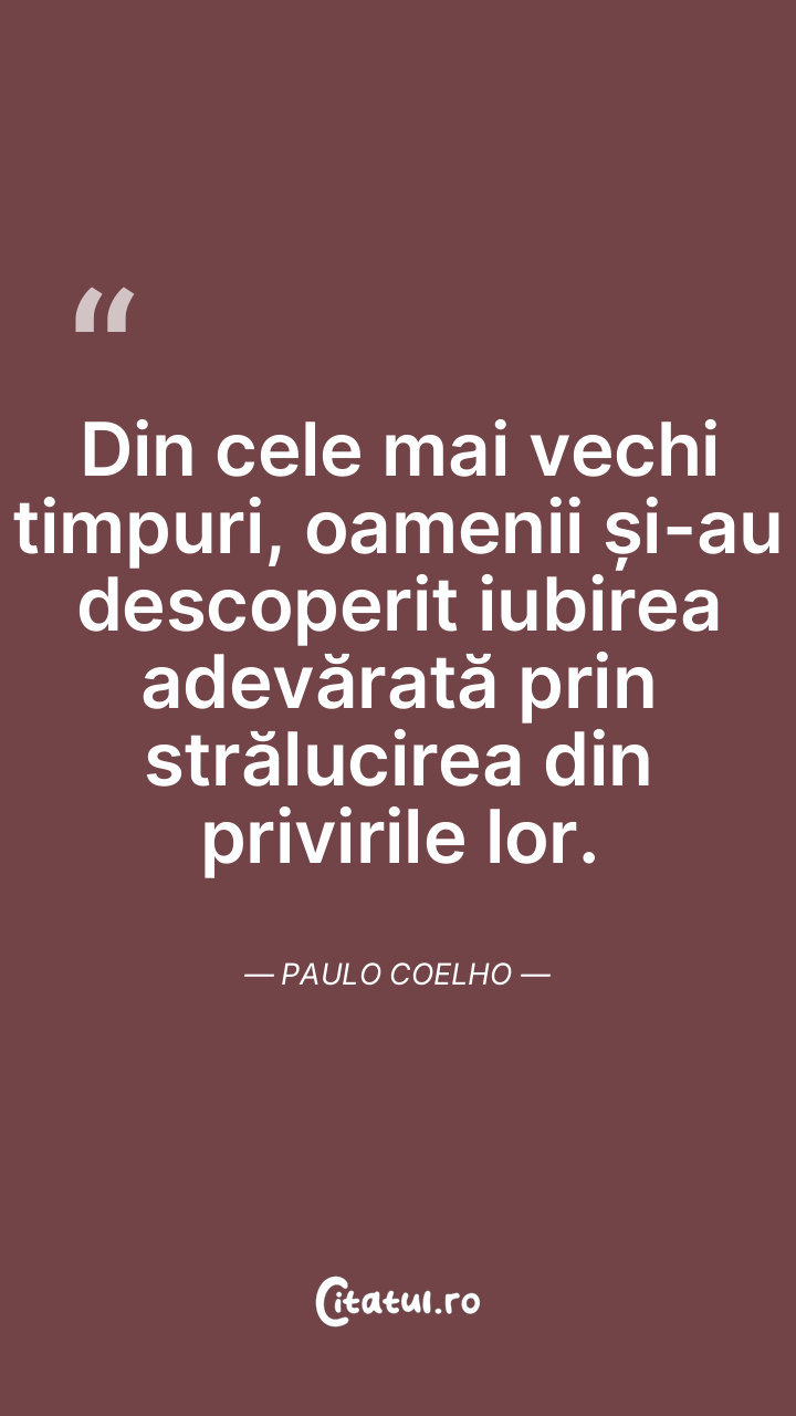 Din cele mai vechi timpuri, oamenii și-au descoperit iubirea adevărată prin strălucirea din privirile lor. Paulo Coelho