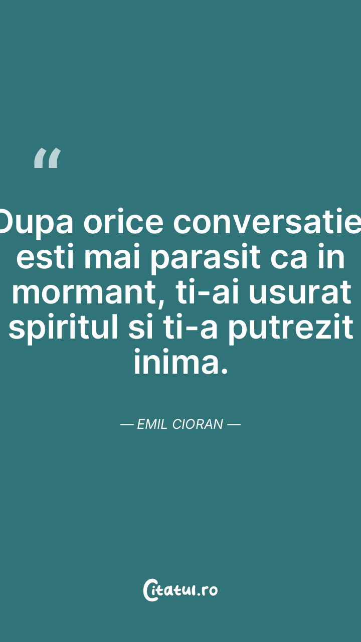 Dupa orice conversatie, esti mai parasit ca in mormant, ti-ai usurat spiritul si ti-a putrezit inima. Emil Cioran