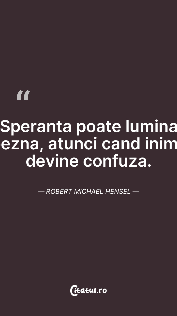 Speranta poate lumina bezna, atunci cand inima devine confuza. Robert Michael Hensel