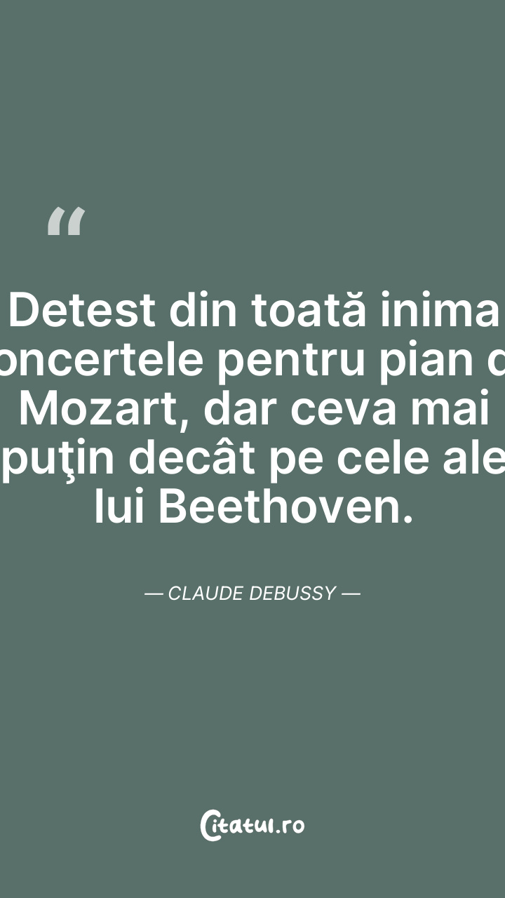 Detest din toată inima concertele pentru pian de Mozart, dar ceva mai puţin decât pe cele ale lui Beethoven. Claude Debussy