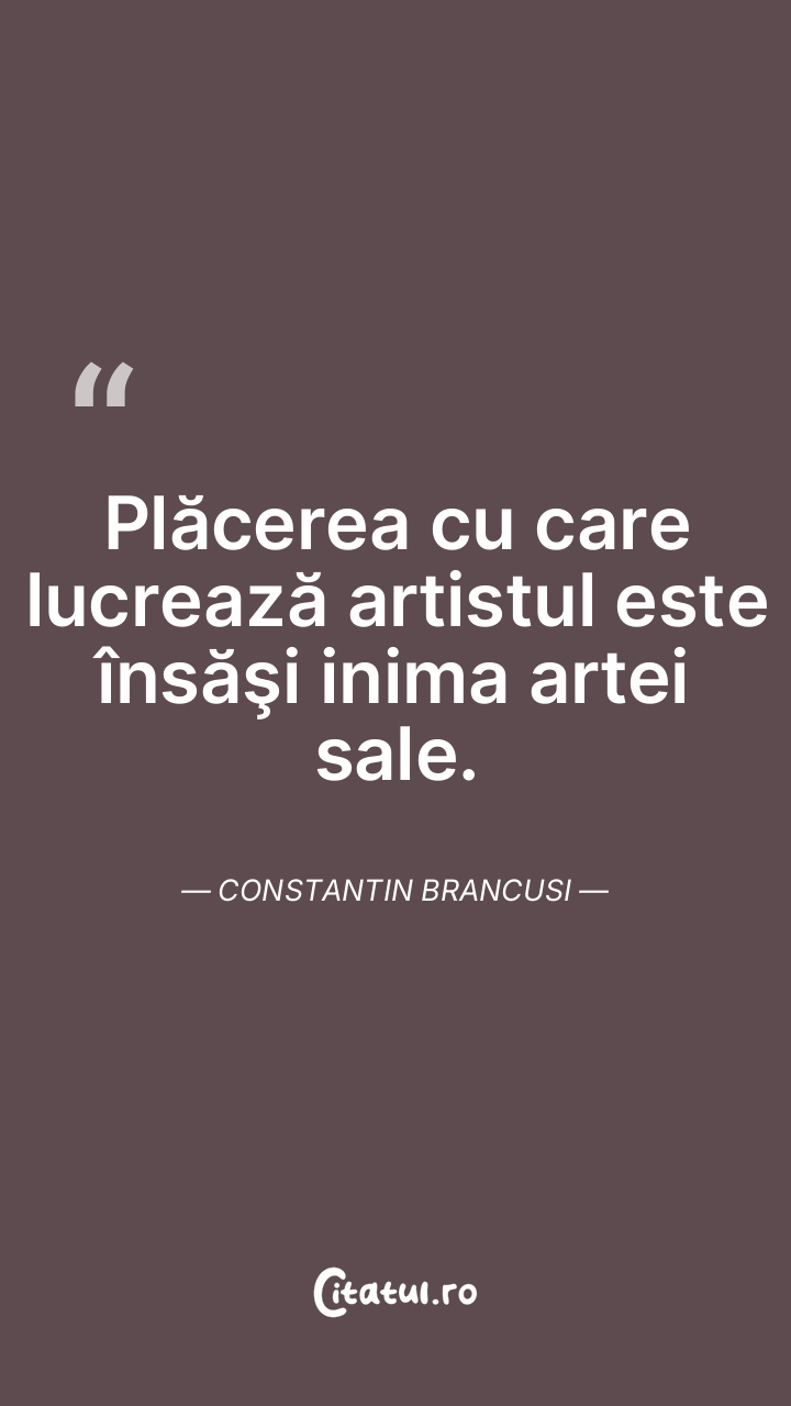 Plăcerea cu care lucrează artistul este însăşi inima artei sale. Constantin Brancusi
