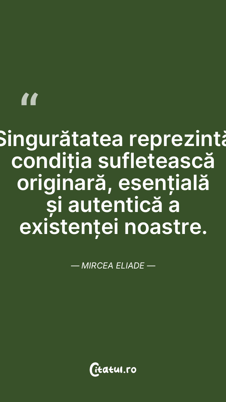 Singurătatea reprezintă condiția sufletească originară, esențială și autentică a existenței noastre. Mircea Eliade