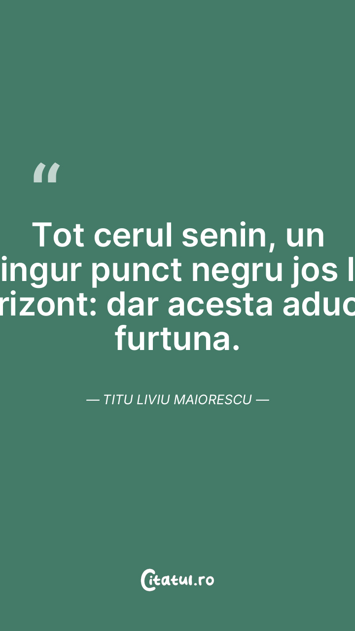 Tot cerul senin, un singur punct negru jos la orizont: dar acesta aduce furtuna. Titu Liviu Maiorescu